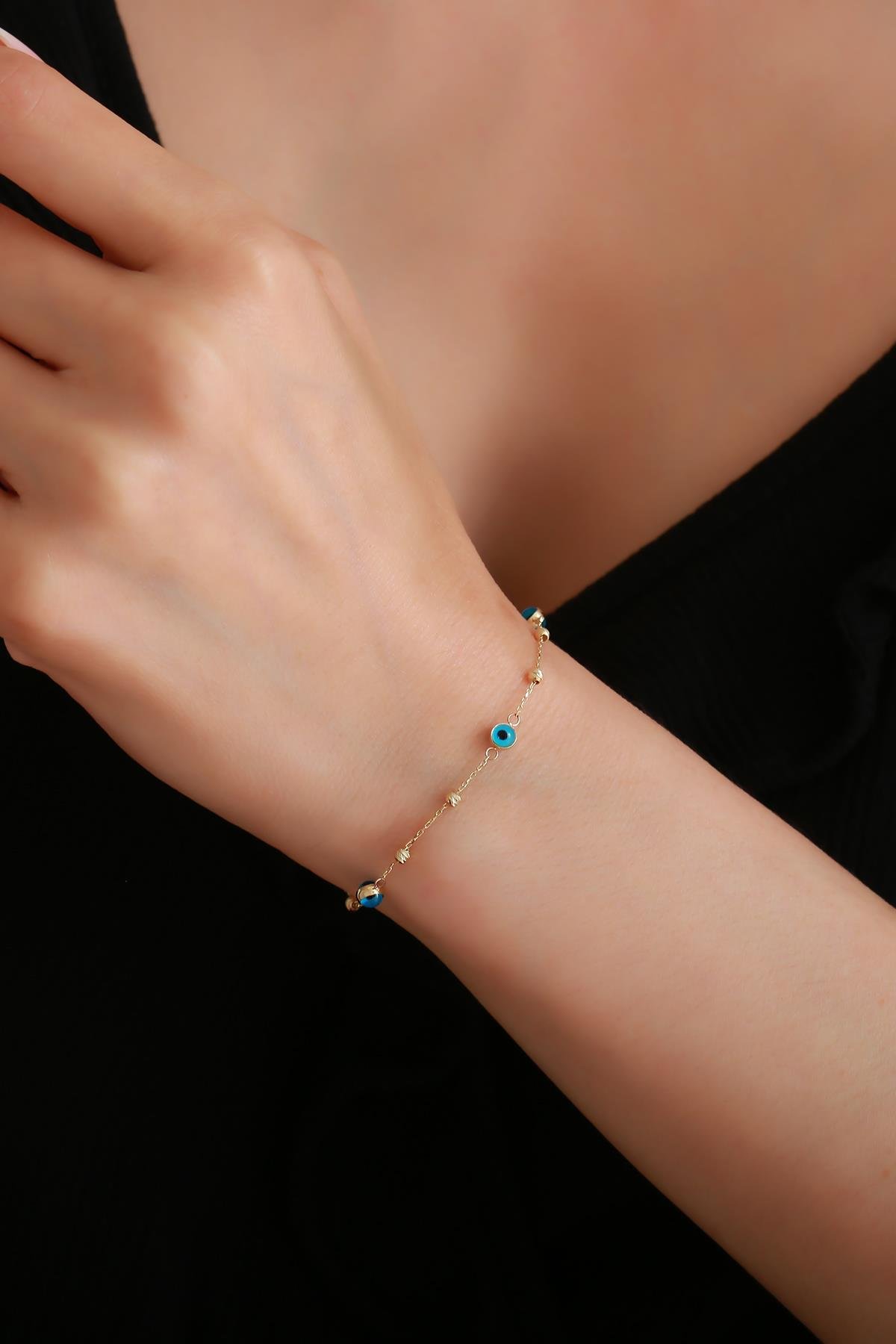 14 Ayar Altın Mavi Gözlü Dorikalı Bileklik