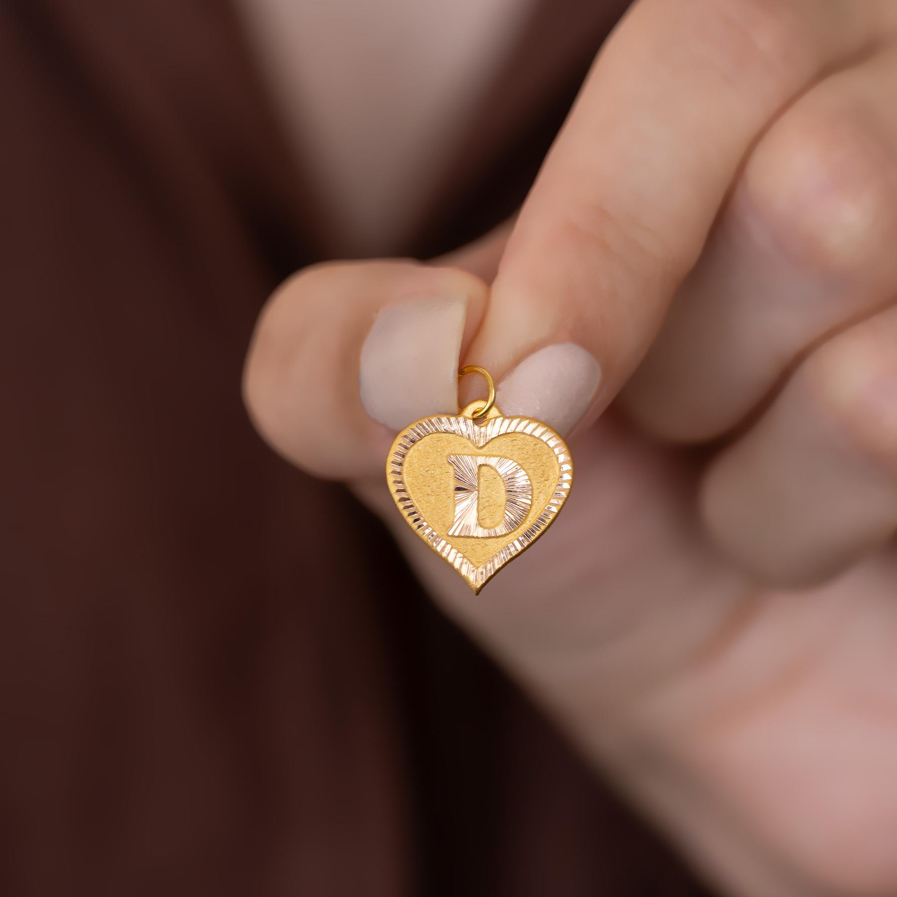 14 Ayar Altın D Harf Kalp Kolye Ucu