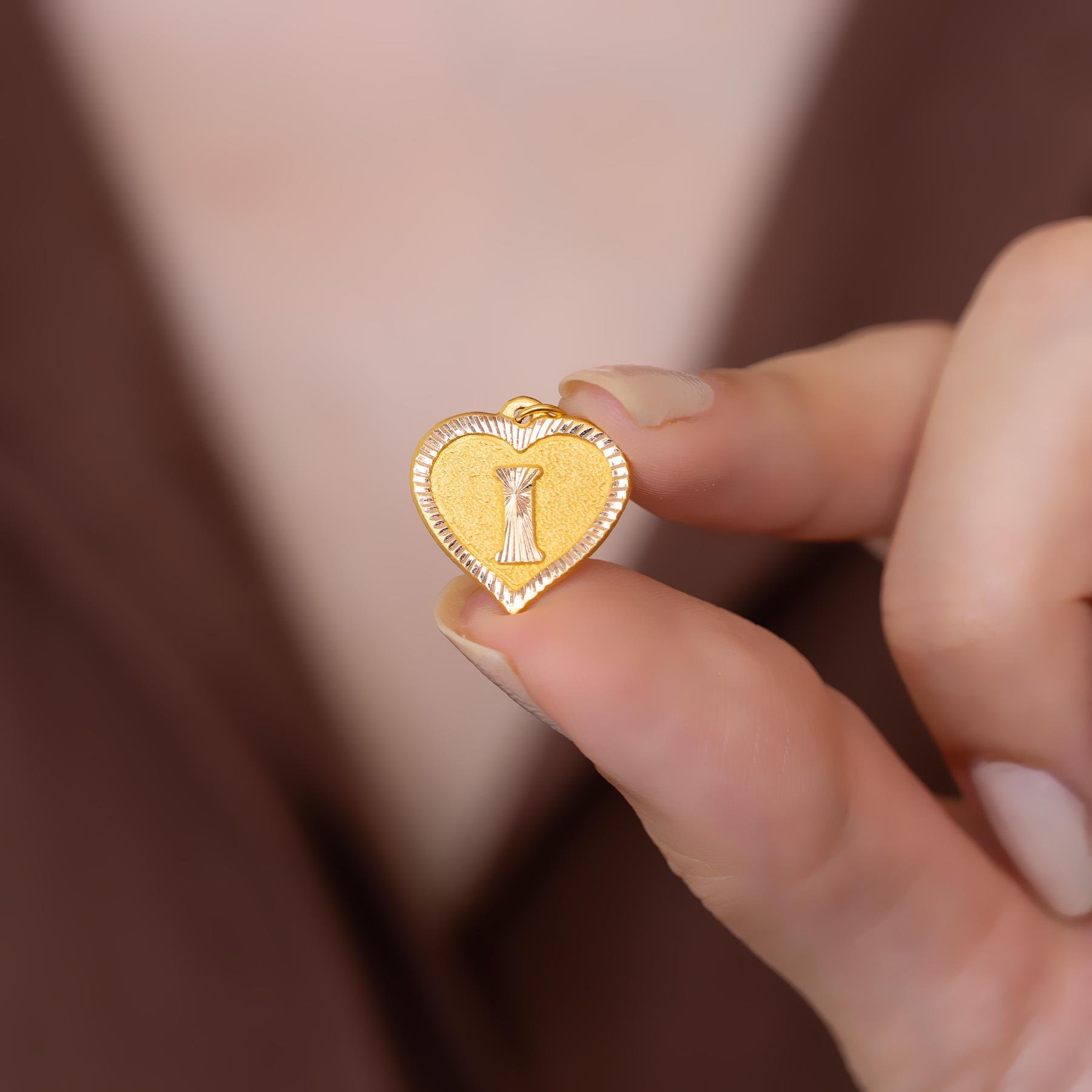 14 Ayar Altın I Harf Kalp Kolye Ucu