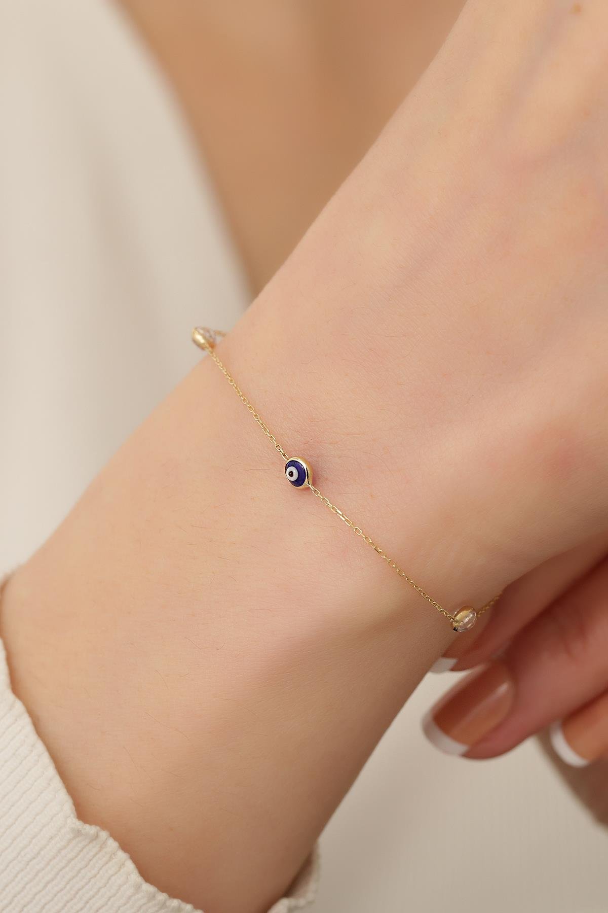 14 Ayar Altın Üç Lacivert Nazar Gözlü Bileklik