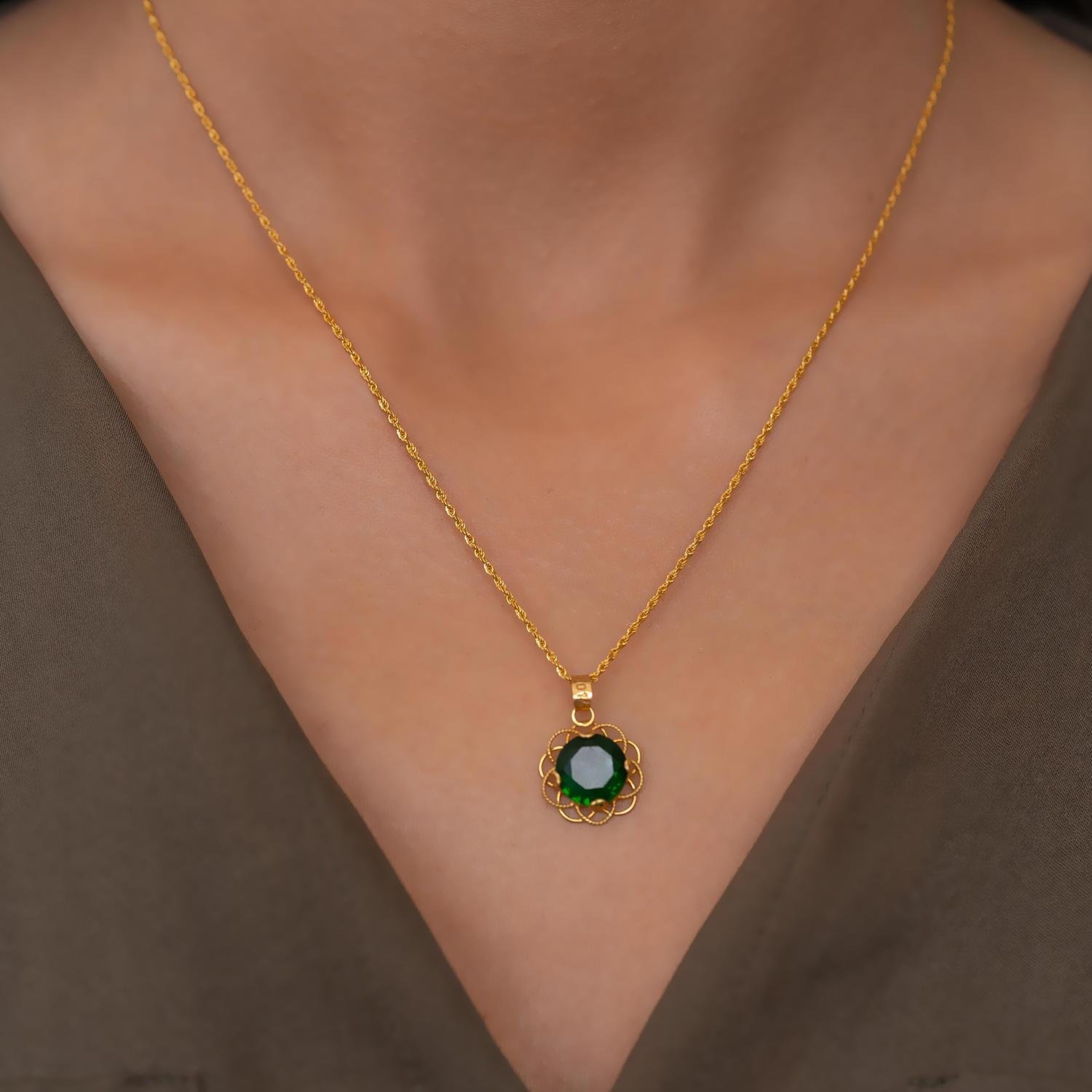 14 Ayar Altın Yeşil Taşlı Telkari Kolye