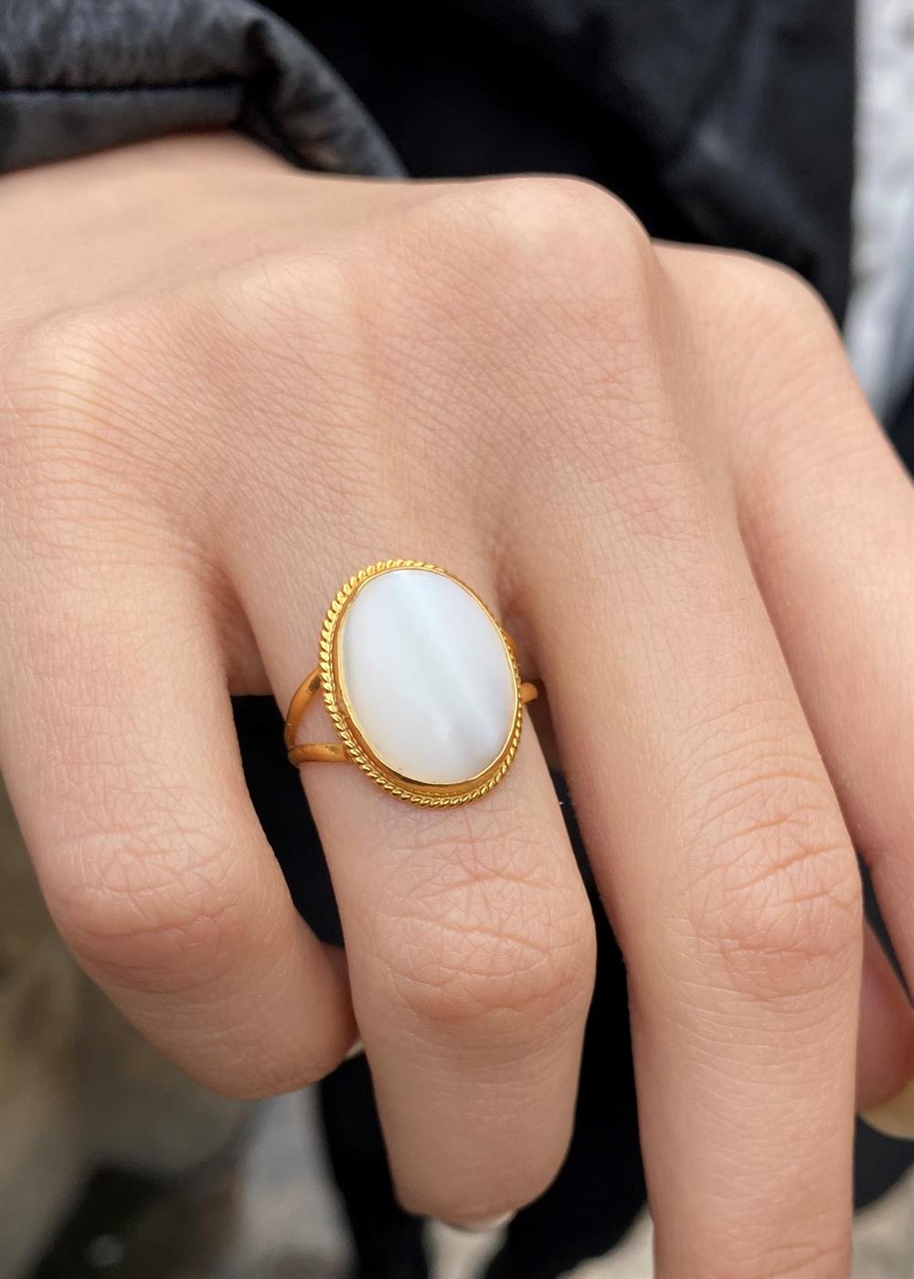 14 Ayar Altın Sedef Taşlı Oval Yüzük